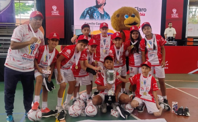 Niños y niñas de Villamaría, Caldas, se coronan campeones de la Copa Claro por Colombia 2025 en un peculiar sistema de juego.